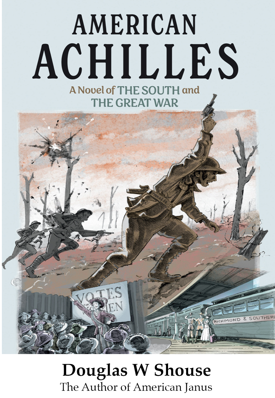 American Achilles, the sequel to American Janus, continues the saga of the Clayton family into the early 20th century. The year is 1917. The towns of Winston and Salem have recently merged. With it’s booming tobacco and textile business, it is the fastest growing city in North Carolina. Yet, trouble is on the horizon. Europe’s disastrous three year war has created much anxiety in the United States, drawing the country inexorably into its vortex. And like most American families, the Claytons are torn and at odds with the country’s looming involvement.